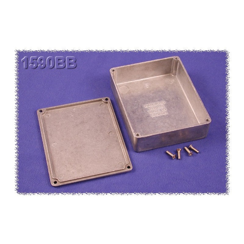 Caja de aluminio con opción negra o sin pintar de superficie lisa sin bordes afilados, tapa opaca y cierre por tornillos metálicos, con IP 65. Apta para protección EMI/RFI.