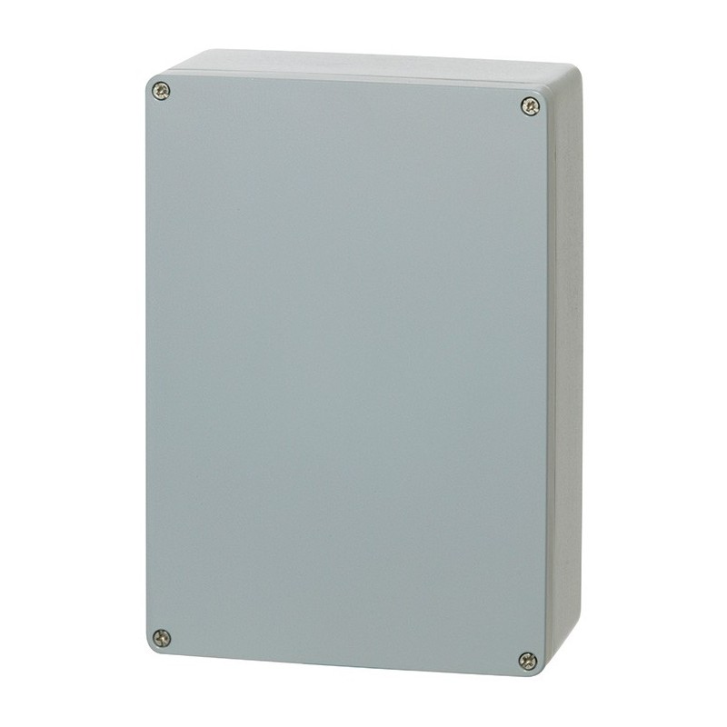 Caja de aluminio de color gris RAL 7031, tapa opaca y cierre por tornillos de acero inoxidable, con junta IP 66
