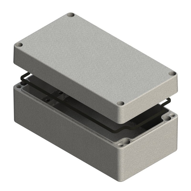 Caja de aluminio IP68 con la mayor protección disponible ante los efectos combinados del agua, impacto y entornos altamente corrosivos. Fabricada en aleación premium GD-AlSi12 con contenido de cobre inferior al 0,1%. Cobertura con pulverización Epoxy-Polyester de color gris.