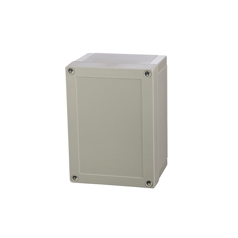 Caja de policarbonato con base de 75 mm de altura, y tornillos para placa de montaje/carril DIN. Con tapa opaca preparada para teclados de membrana, cierre con tornillos de poliamida, y junta de goma para IP 66. De color gris RAL 7035.