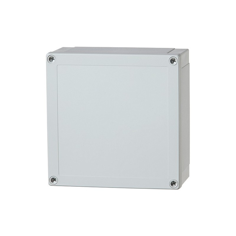 Caja de ABS con base de 50 mm de altura, y tornillos para placa de montaje/carril DIN. Con tapa opaca preparada para teclados de membrana, cierre con tornillos de poliamida, y junta de goma para IP 66. De color gris RAL 7035.